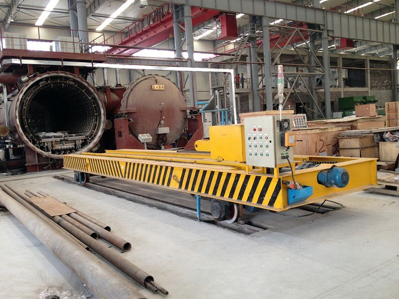 在真空爐熱處理生產(chǎn)車間,不僅要將物料運送到真空爐的工位上,還需要將物料運到真空爐內(nèi)部,而真空爐與運輸設(shè)備之間又會有一定的距離,這樣就對運輸設(shè)備有較高的要求,根據(jù)其特定的要求,真空爐擺渡式軌道平車就是專門設(shè)計來應(yīng)對這種工況的。